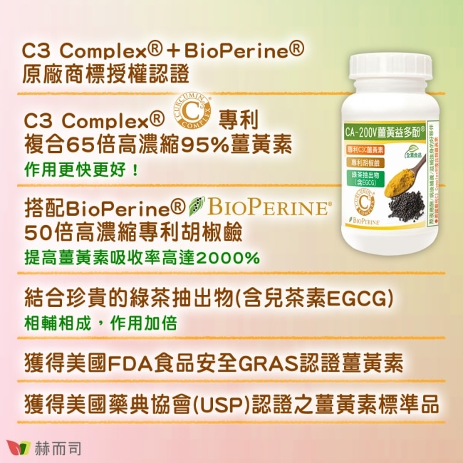 頂級高純度C3C專利複合65倍高濃縮95%薑黃素Curcumin+專利胡椒鹼+茶多酚EGCG