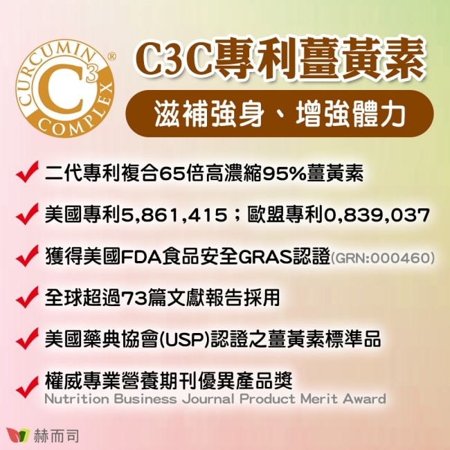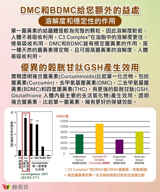 C3 Complex®二代專利複合65倍高濃縮95%薑黃素有更強的穀胱甘肽GSH產生效用作用更快更好