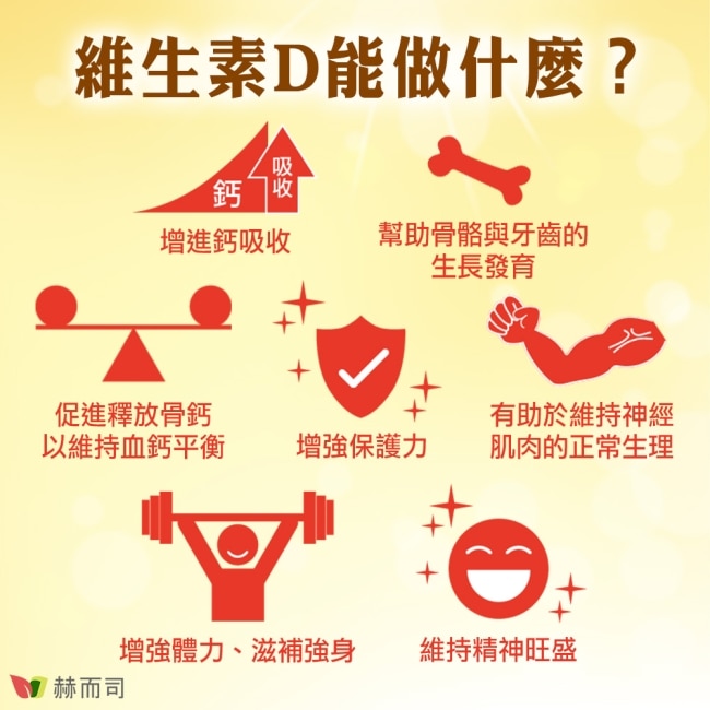 幫助骨骼與牙齒的生長發育。促進釋放骨鈣以維持血鈣平衡。有助於維持神經、肌肉的正常生理。