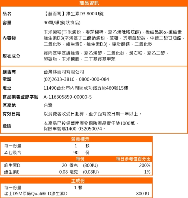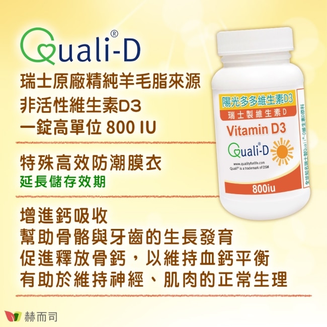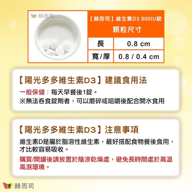 赫而司陽光多多維生素D3 800IU 高效防潮膜衣錠