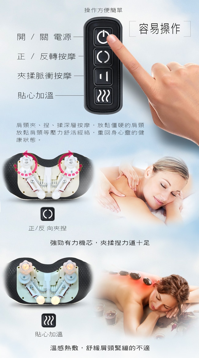 | 商品簡述 | 全新[夾揉]專利設計 夾捏揉推超到位 |