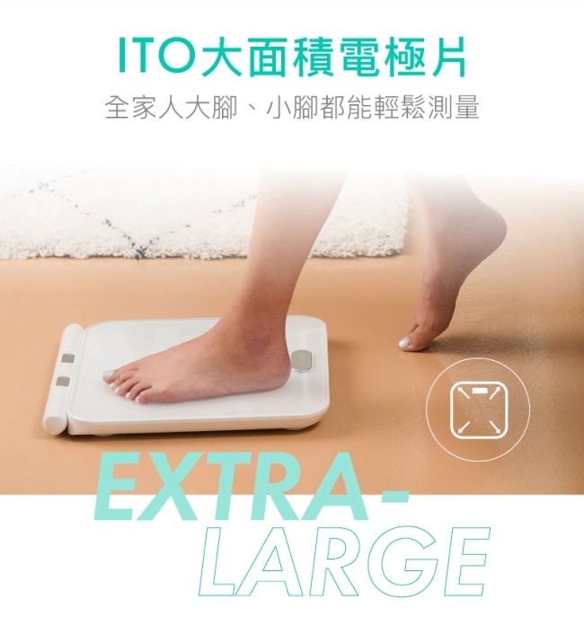 4. 大範圍ITO鍍膜測量體重體脂大、小尺碼的腳也沒問題
