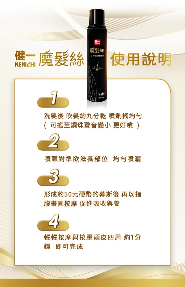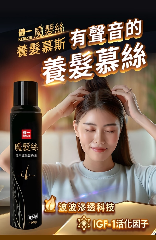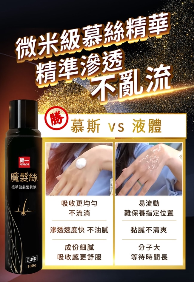 健一魔髮絲是日本原裝進口,主打日常養護頭皮與髮根的養髮慕絲,