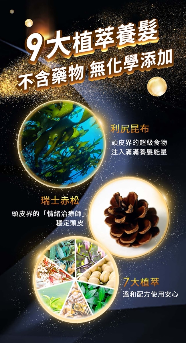 | 目的功效 | 強健髮根、強韌髮絲、養護頭皮/髮 |