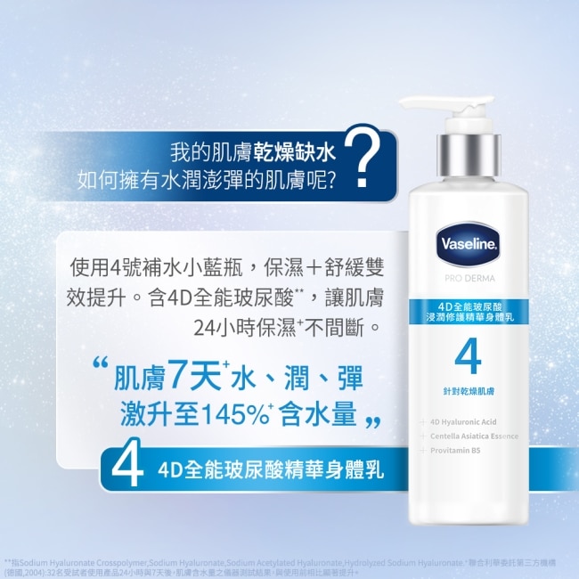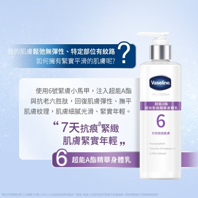 | 商品簡述 | 凡士林5.5%果酸精華煥膚調理精華身體乳: 溫和代謝全身的老廢角質肌膚細緻平滑。 |