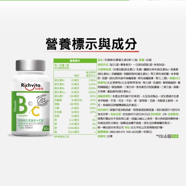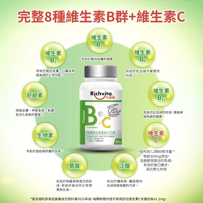 | 商品簡述 | 8種維生素B群提供工作活力、精神旺盛 |