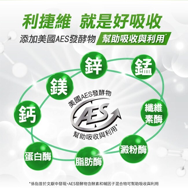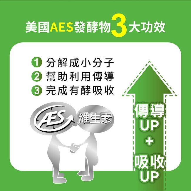 主要成份: 抗壞血酸(維生素C)、乳糖、鹽酸吡哆辛(維生素B6)、核黃素(維生素B2)、菸鹼醯胺、硝酸硫胺明(維生素B1)、聚乙烯吡咯烷酮、本多酸鈣、肌醇、膜衣(羥丙基甲基纖維素、羥丙基纖維素、聚乙二醇)、美國AES發酵物[大豆發酵物(大豆發酵萃取物、氧化鎂、乳酸鈣、葡萄糖酸鋅、葡萄糖酸錳)]、硬脂酸鎂、二氧化矽、食用黃色四號鋁麗基、二氧化鈦、葉酸、生物素、氰鈷胺明(維生素B12)