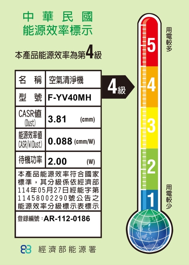 能源效率除濕能源效率分級第1級清淨能源效率分級第4級