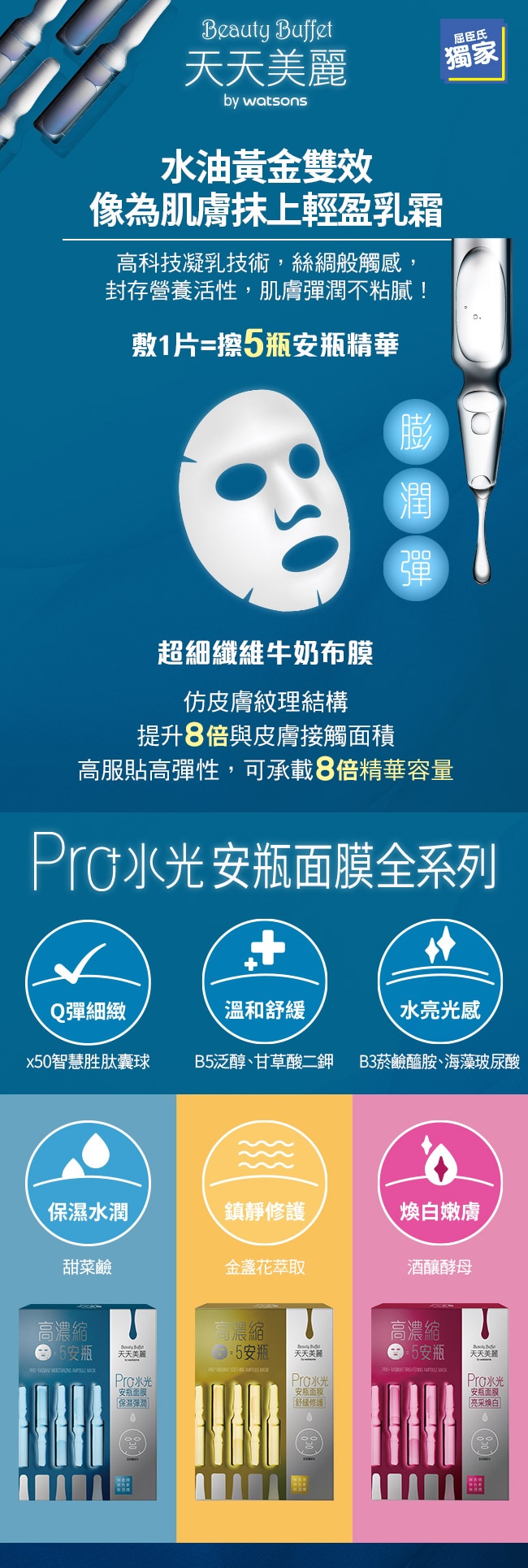 商品名稱: 天天美麗 Pro+水光 保濕彈潤安瓶面膜4入