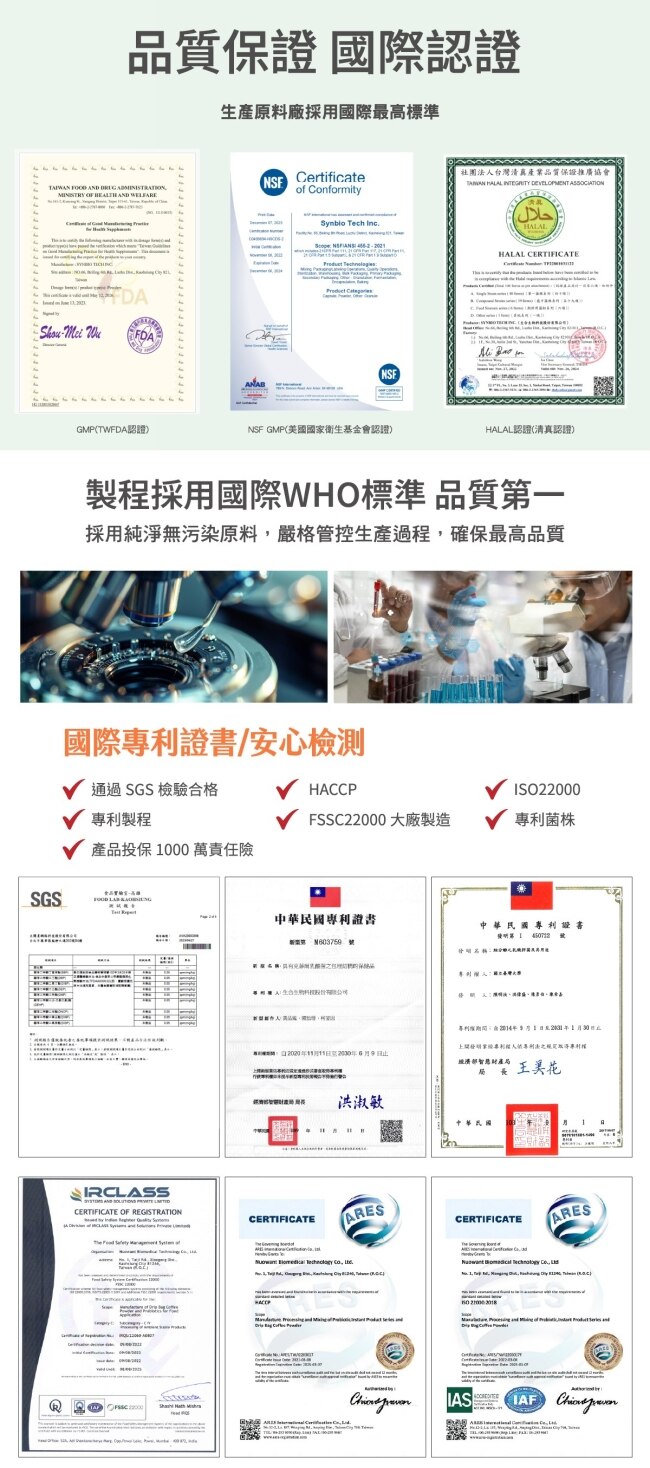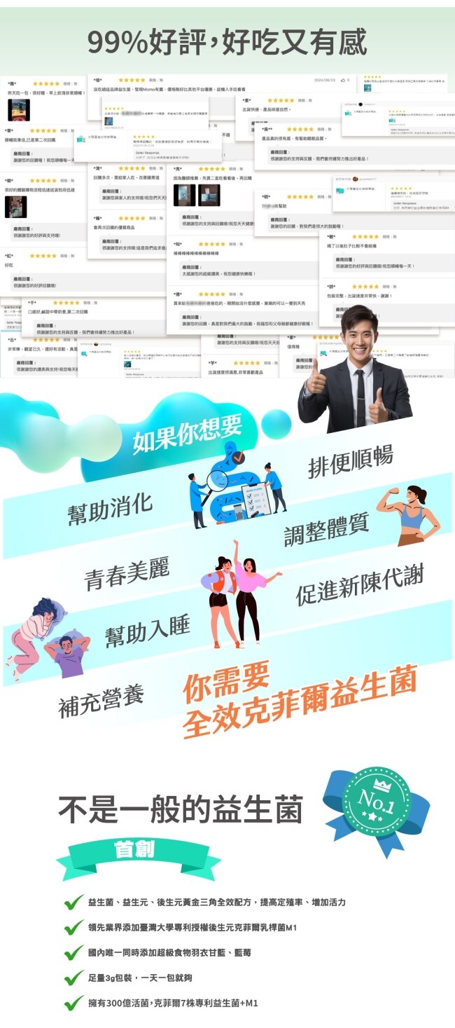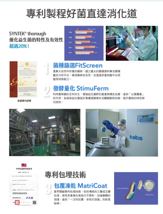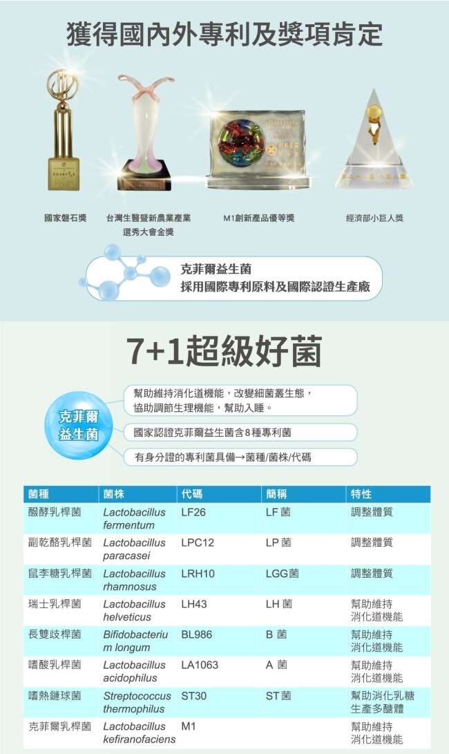 • 專利克菲爾M1菌株台灣知名大學技轉強化消化道健康。