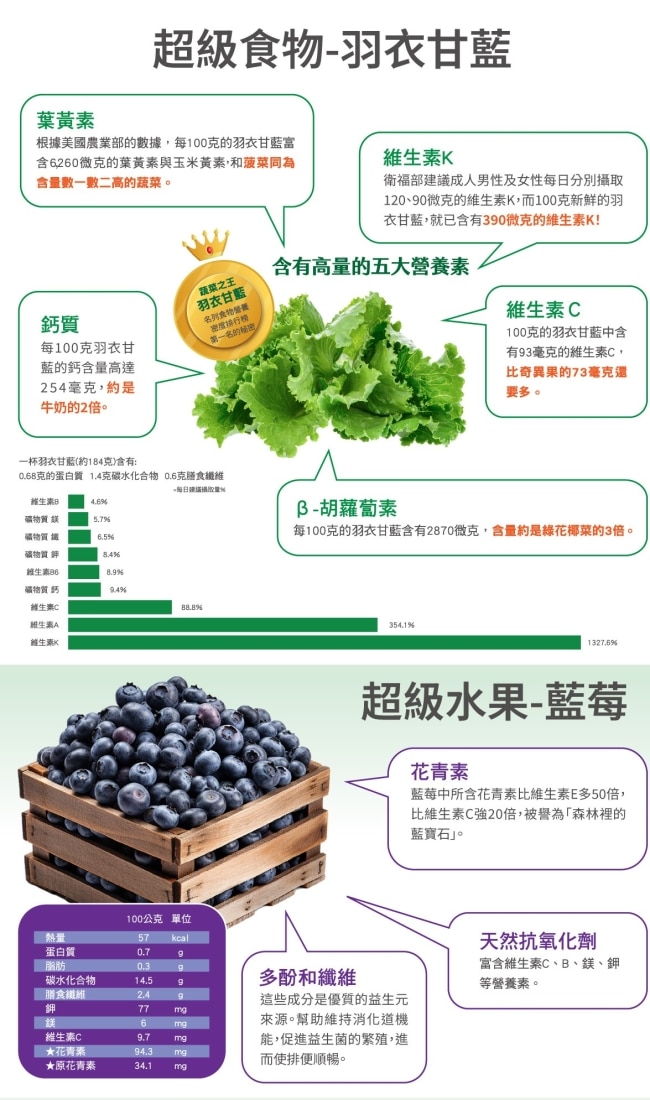 獨家添加羽衣甘藍、藍莓超級食物營養素