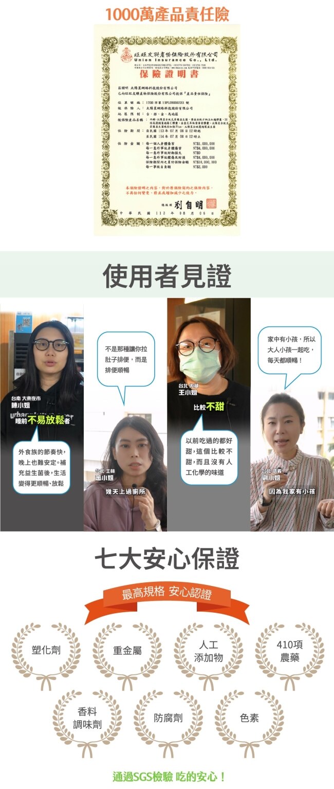 • 天然無添加無防腐劑、香料、色素與糖通過SGS檢驗。