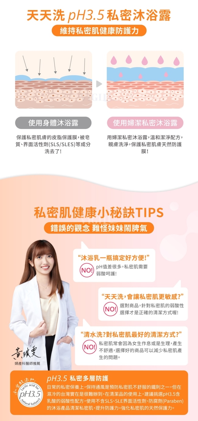 pH3.5私密酸- 天然乳酸精準調理私密細緻肌膚酸鹼平衡維持酸性環境。
