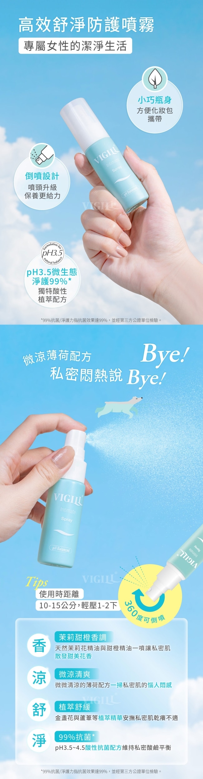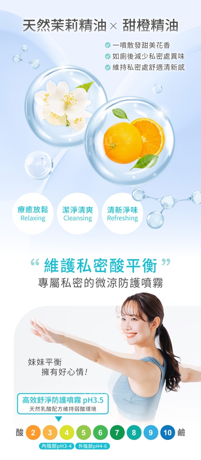 | 商品簡述 | 私密肌日常清潔、淨味、防護。微涼 360度可倒噴 |