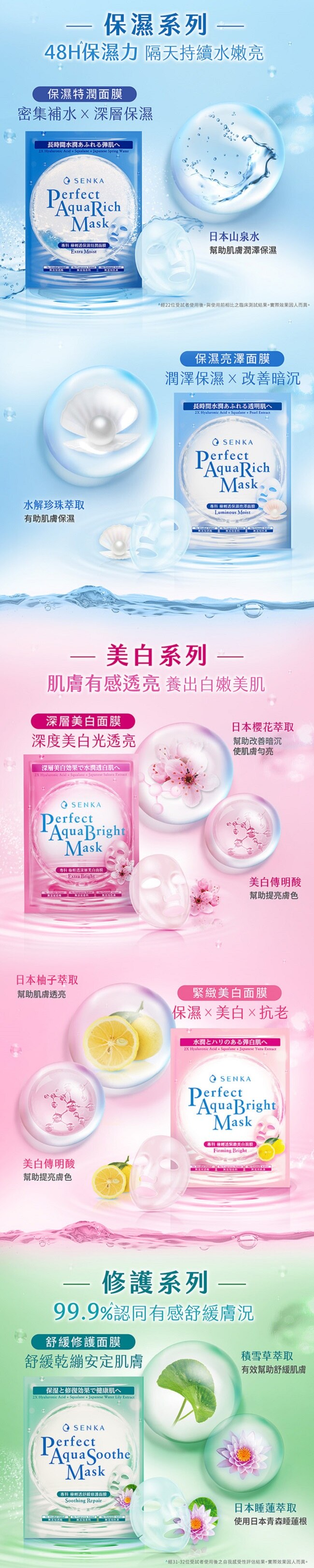 針對各種膚況 做立即性深層補水和保養 且具持久保濕力 即使第二天肌膚仍持續水 嫩 亮!