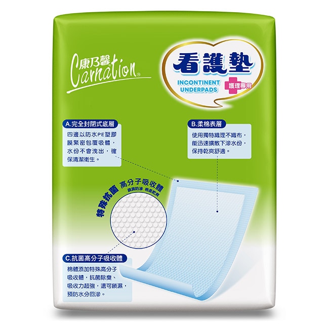 | 商品簡述 | 獨特織理不織布─保持表面乾爽迅速擴散及下滲。防水PE膜─底層防水PE構造緊密包覆確保衛生。 |