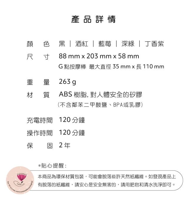 6. 保固期內商品本身有瑕疵或故障 (非人為因素和外力損壞)因產品屬個人私密用品有衛生疑慮保固只更換新品不維修。