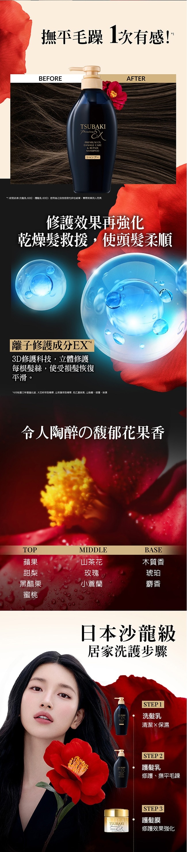 -損傷修護機能X頂級山茶花精油*3,呈現光澤髮