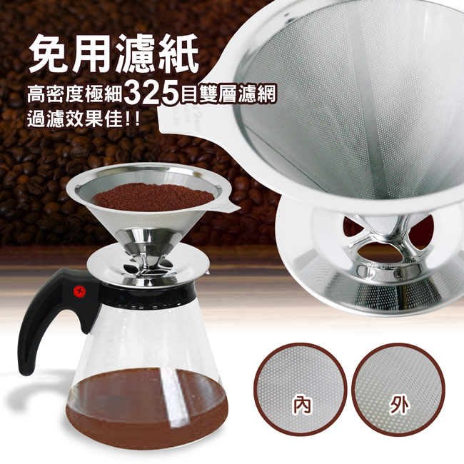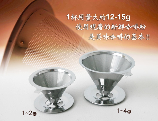 *雙層不鏽鋼濾網,免用濾紙可重複使用,無漂白劑及塑化劑之疑慮,安全又環保