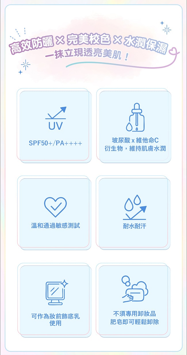 | 商品簡述 | 最強*透明感鎖光UV 全日白皙不間斷 |
