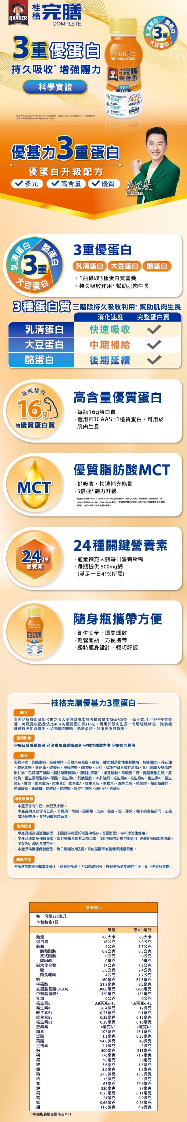 | 商品簡述 | 精選24種關鍵營養 符合每日營養所需 增強體力 40%優質蛋白質 |