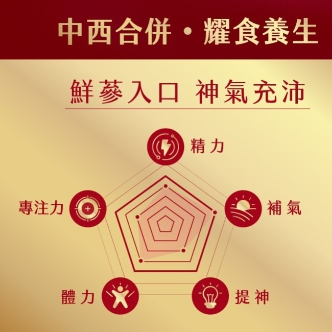 | 商品簡述 | 西方保健成本之聚精養護加東方傳統養生食材固本穩氣中西合併提供聚精、穩氣、匯神及溫潤順口等特色 |