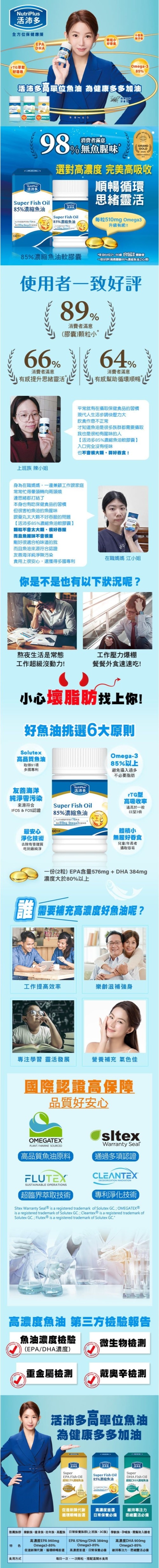 | 商品簡述 | 採用西班牙Solutex高品質魚油超臨界萃取及專利淨化技術顆粒小好吞服。 |