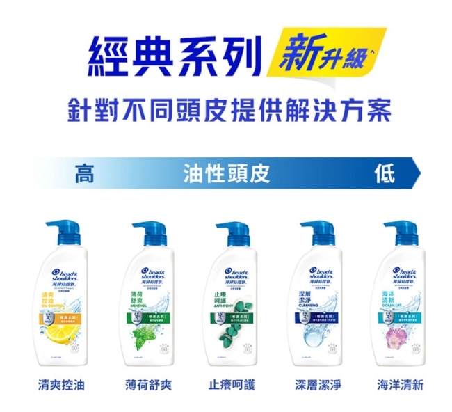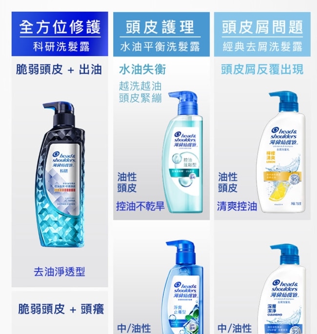 油性頭皮: 清爽控油、薄荷舒爽、深層潔淨