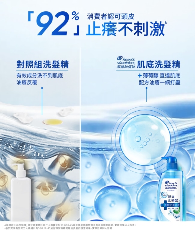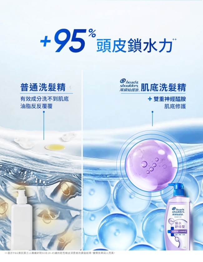 ~基於P&G委託第三人機構針對60名18-45歲的乾性頭皮消費者的調查結果,實際效果因人而異。