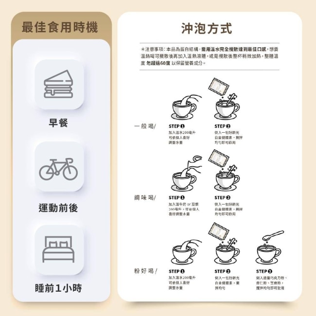 備註欄1.孕婦、服用藥物或有其他疾病者請先徵詢醫藥師意見再行食用。 2.開封後為維持產品新鮮度請盡快飲用完畢。 3.本產品含有牛奶、大豆及其製品不適合對其過敏體質者食用。 4.此為葷食素食不可食用。