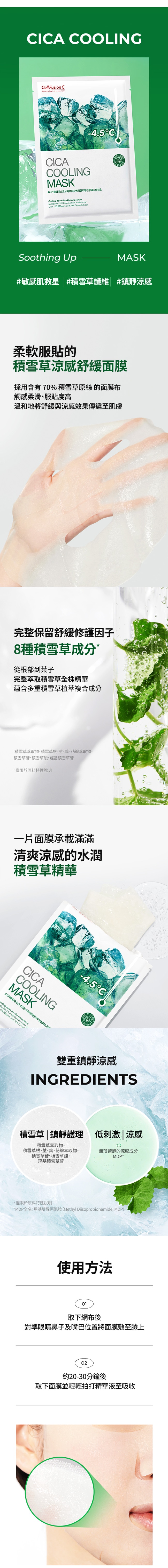 | 目的功效 | 含有高濃郁積雪草提取雙重舒緩涼感機制為肌膚有感降溫4.5度 |