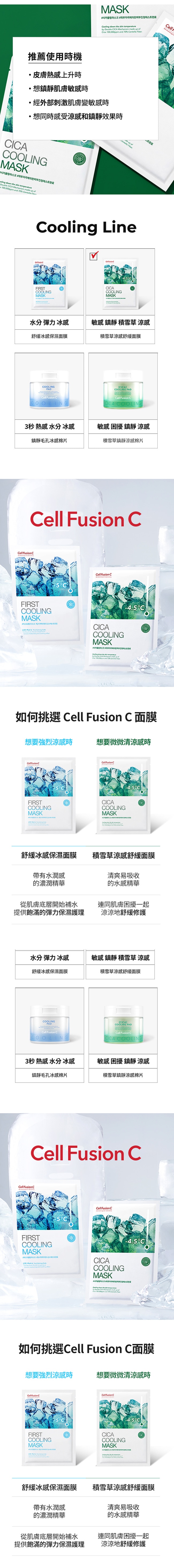 Cell Fusion C 秀膚生專利技術以70%積雪草植物纖維做成面膜紙柔軟貼合肌。