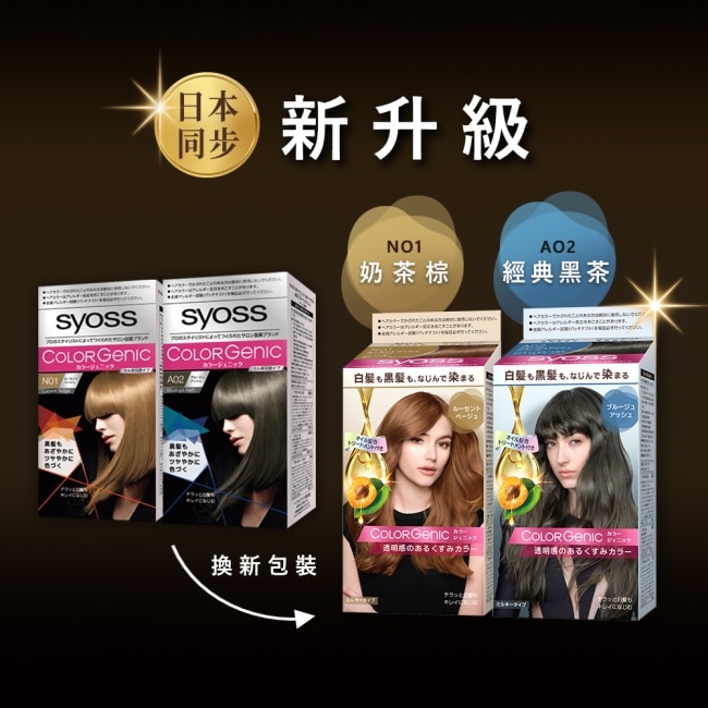 超透光顯色黃金配比提升並改善微白髮與黑髮的透光度。