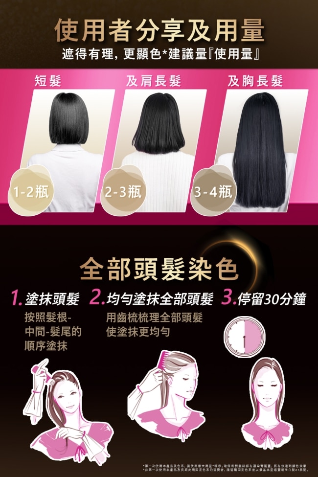 3. 超透光顯色黃金配比提升並改善微白髮與黑髮的透光度。