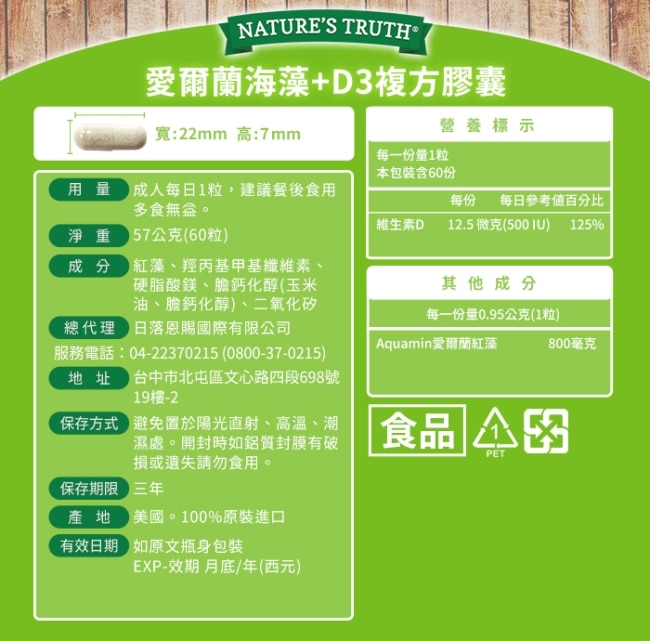 | 製造日期 | 瓶身標示為有效日期 EXP-效期 月底/年(西元) / 保存期限3年 |