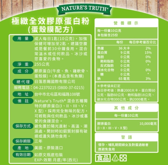 綠萃淨 極緻全效膠原蛋白粉-蛋殼膜配方(255g/瓶)