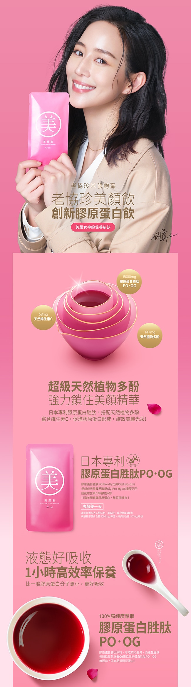 | 商品簡述 | 保養飲品專家-老協珍耗時多年研發膠原蛋白飲品 以創新方式使用四款超級天然植物多酚 強力 |