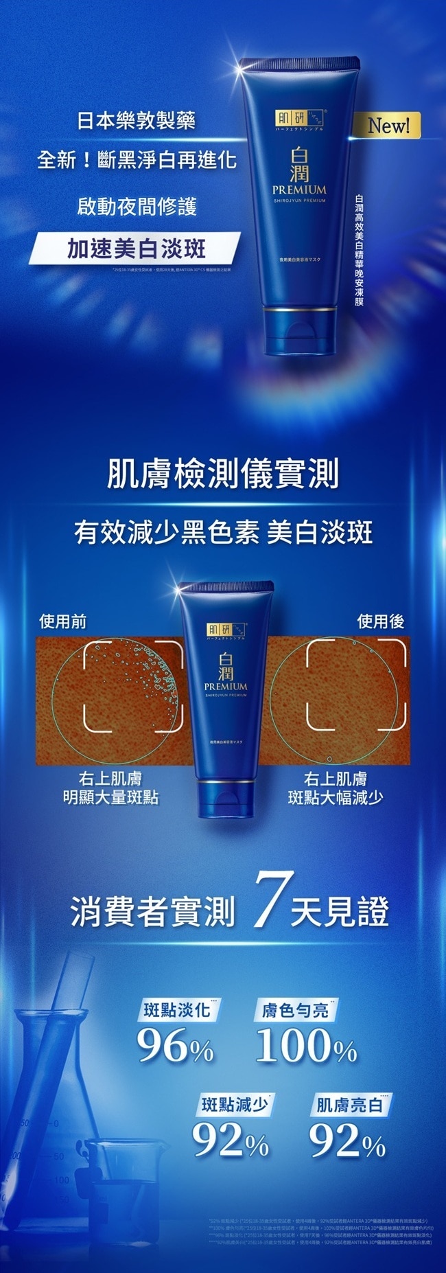 晚上塗抹於臉部一覺醒來肌膚透亮無暇。