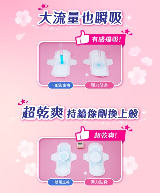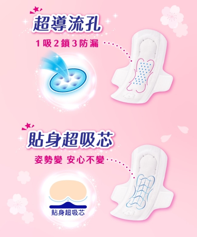 貼身瞬吸身體不是平面的一般平面衛生棉與身體間會有縫隙無法立即吸收經血易造成外漏