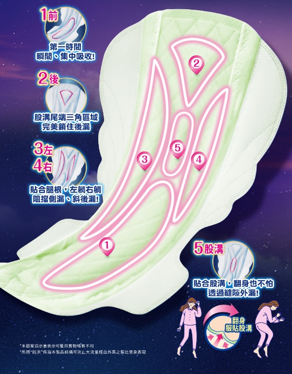 前後左右+股溝持續貼身防止變形大流量也瞬吸
