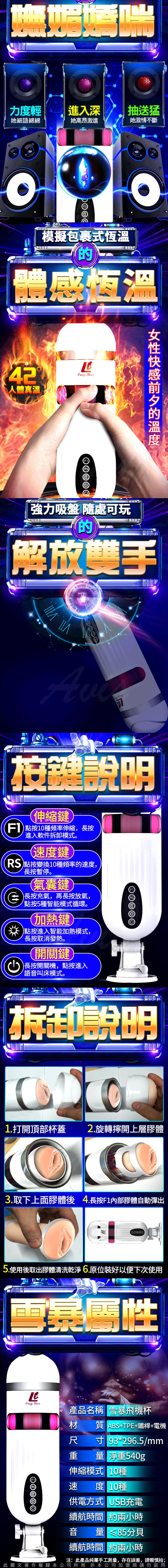 .商品功能:雪暴杯 10x10頻智能伸縮抽插 氣囊夾吸 加溫語音吸盤自慰杯 |