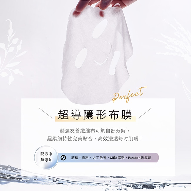 嚴選天然友善纖維超柔細特性完美貼合密集注入滋養精華全面浸透每吋肌膚
