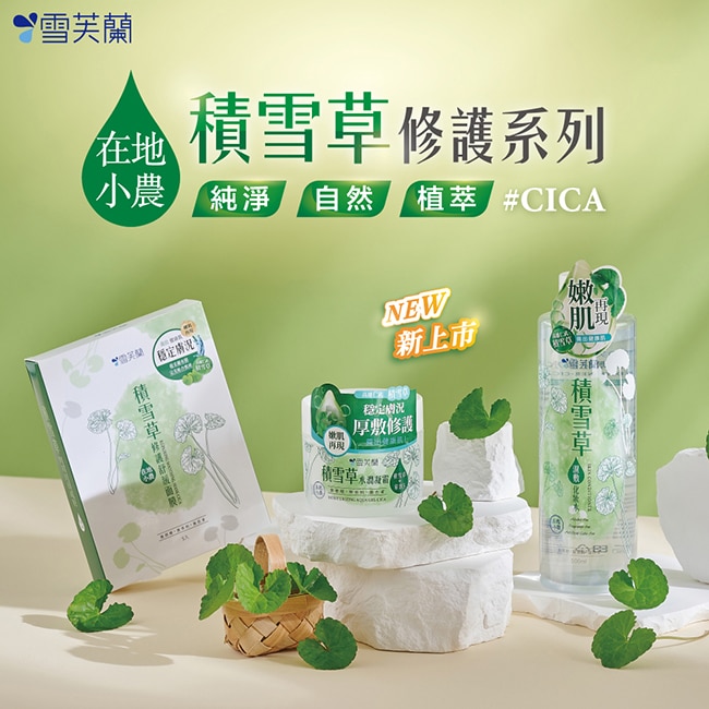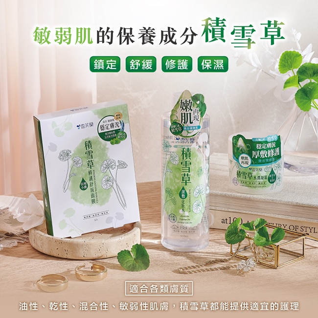 積雪草精華取自台灣在地高雄仁武可緩解肌膚泛紅缺水等不適感。