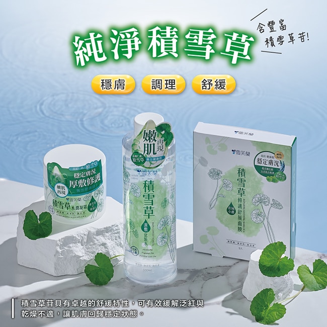 取自台灣在地高雄仁武“積雪草”萃取精華高度修護力可緩解肌膚泛紅缺水等不適感持續使用可呈現健康柔嫩肌。