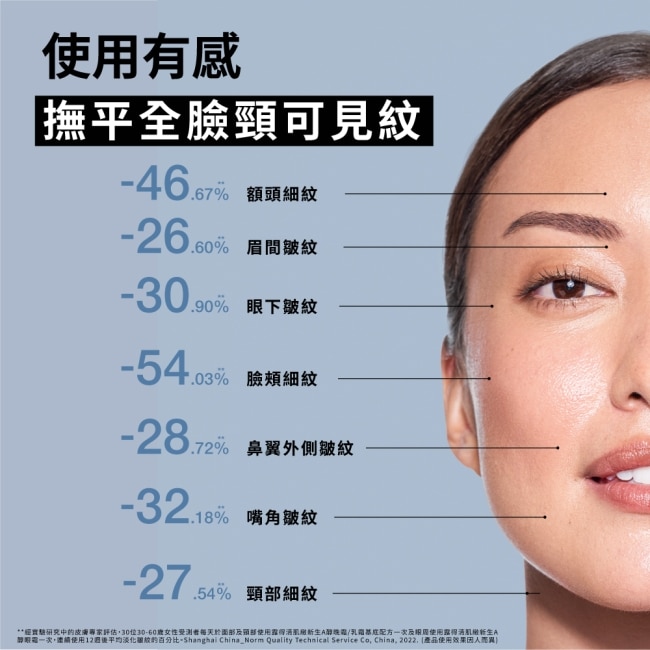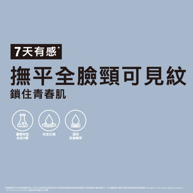精純A醇 : 經皮膚專家證實有助於淡化細紋、暗沉和皺紋