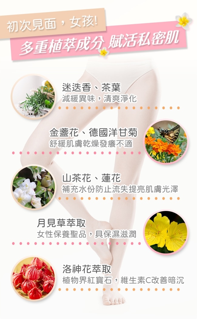 | 商品簡述 | ph4.0弱酸洗淨 呵護私密肌多重植萃成分 讓私密肌處在良好環境通過SGS認證 可以安心使用。 |