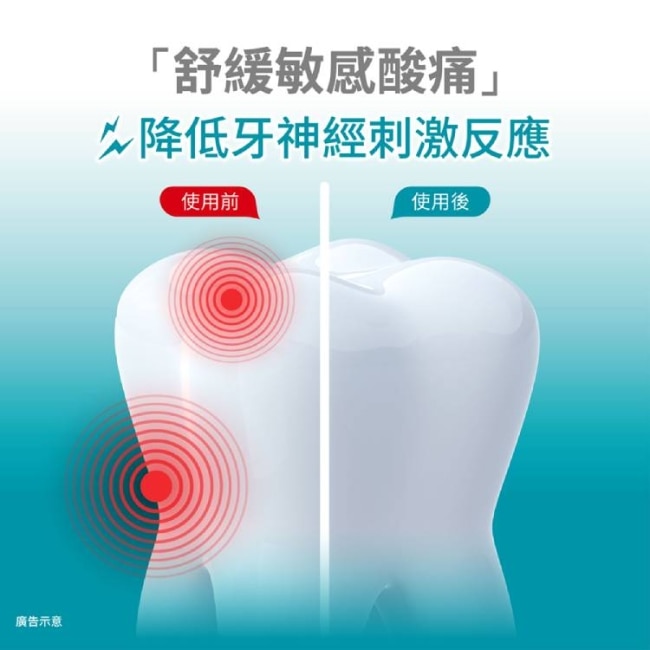 | 商品簡述 | 舒緩牙敏感,修復琺瑯質,強化琺瑯質,24小時抗敏感 |