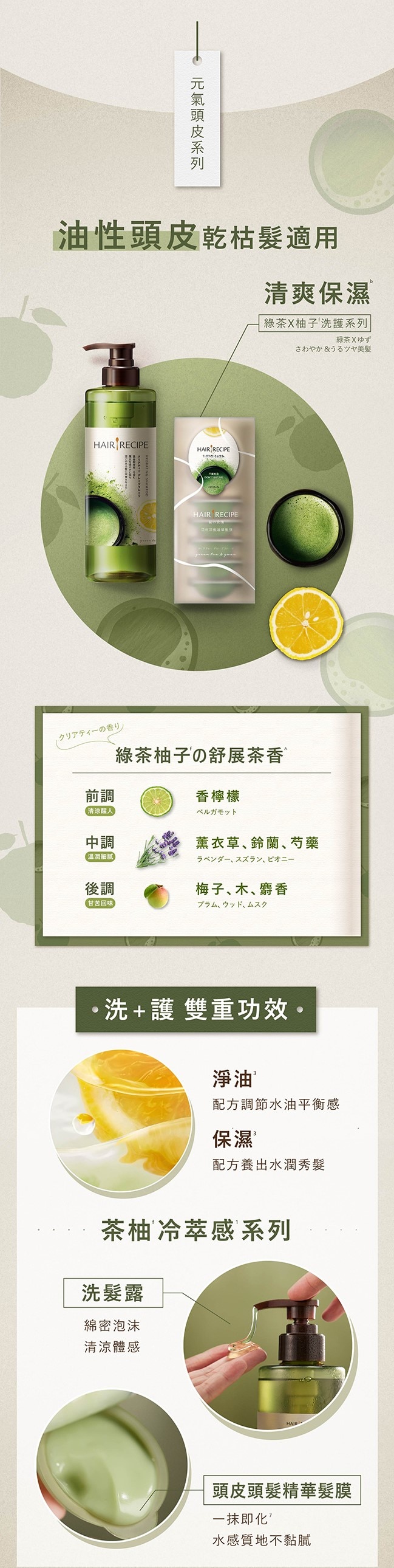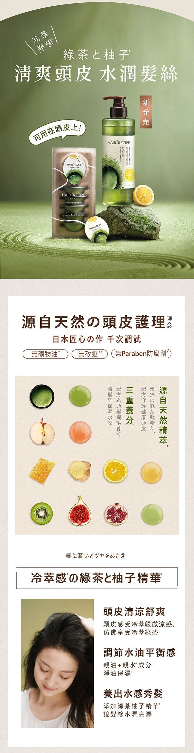 Hair Recipe 日本髮的食譜/髮的料理頭皮頭髮精華髮膜綠茶柚子12MLX2