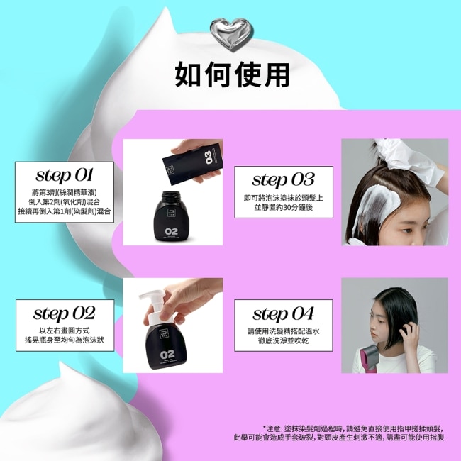 提升染髮便利性!絲滑好塗抹,不滴落,泡泡幕斯質地可緊密貼合髮絲