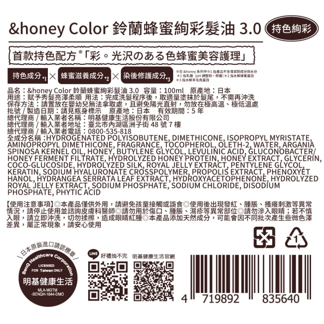 &honey Color 炫彩護色修護髮油 3.0 專為染後髮絲設計能有效鎖住髮色延長染髮的鮮豔度。